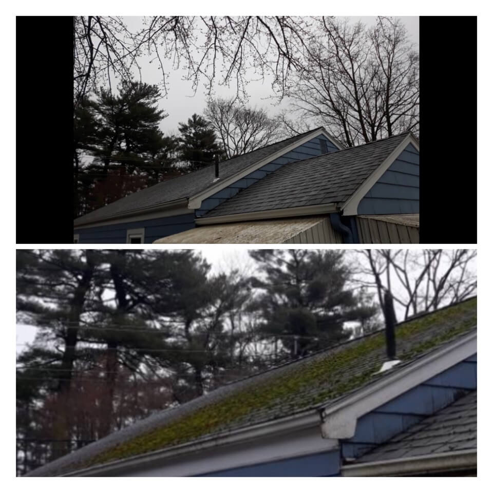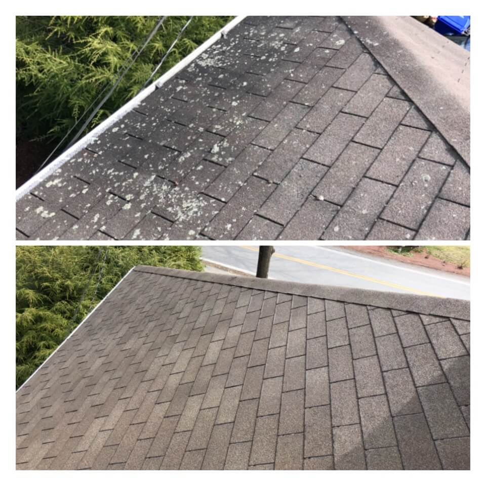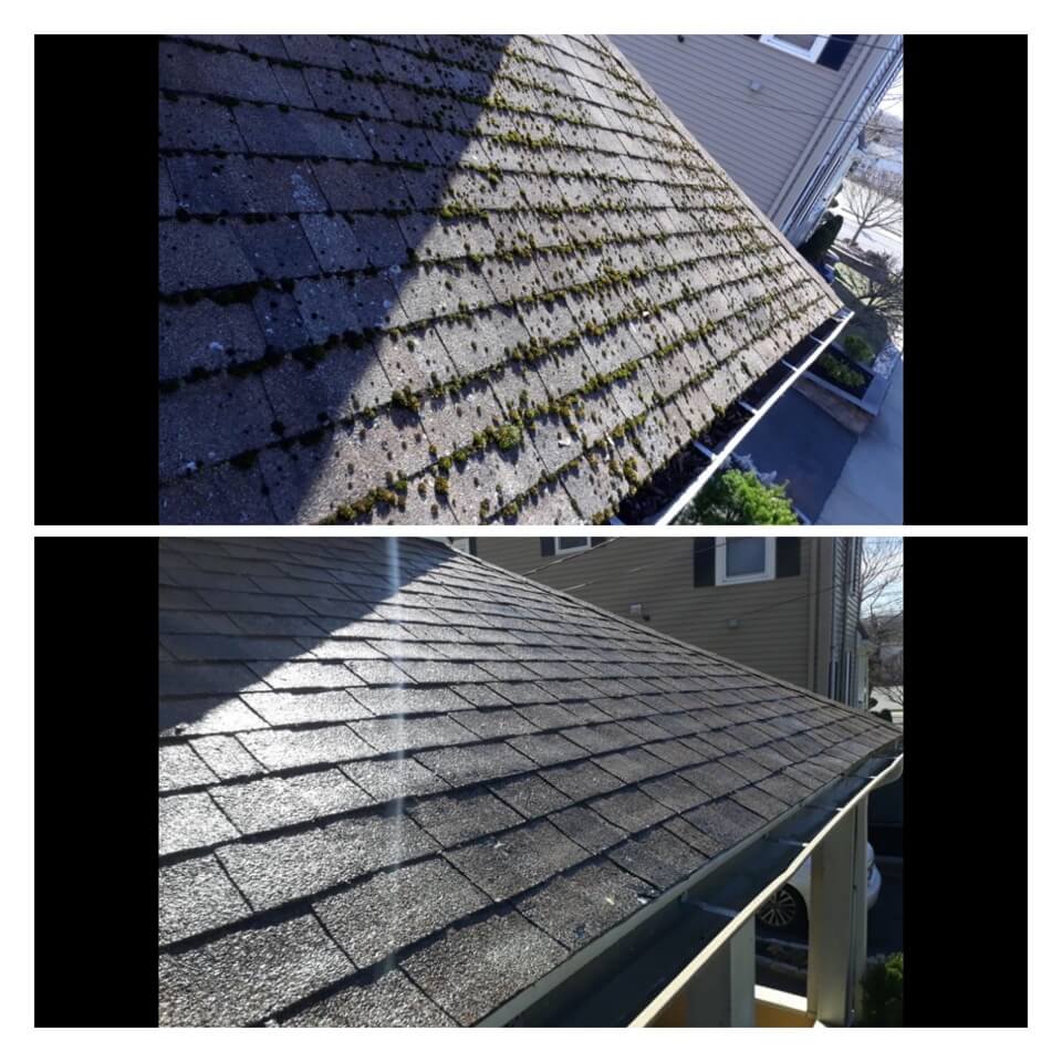 HiCleaners is the most experienced company in Brockton, MA that deals with roof washing and roof soft washing. All of our employees are trained to recognize precise solution mixing ratios to provide you with the safest and most effective soft washing service. Roofs are a commonly neglected part of a house due to the fact that most people don’t have ladders to access it, so it is very easy to just leave it alone and forget about problems that may start to arise. Just like many home owners, discoloration and small bits of moss on a roof can be overlooked because of the misconception that it is just aesthetic. However, it isn’t just aesthetic, the moss slowly lifts the granules off the shingles which in turn shorten the life of the shingle. The moss also spreads, just like any bacteria if it is left alone for too long, it can quickly become a problem that spirals out of control. Call HiCleaners for a free quote, we only use the most advanced eco-friendly solutions and equipment to make sure the job is done right, for the safety of the employees, your plants, grass, pets, and children.
